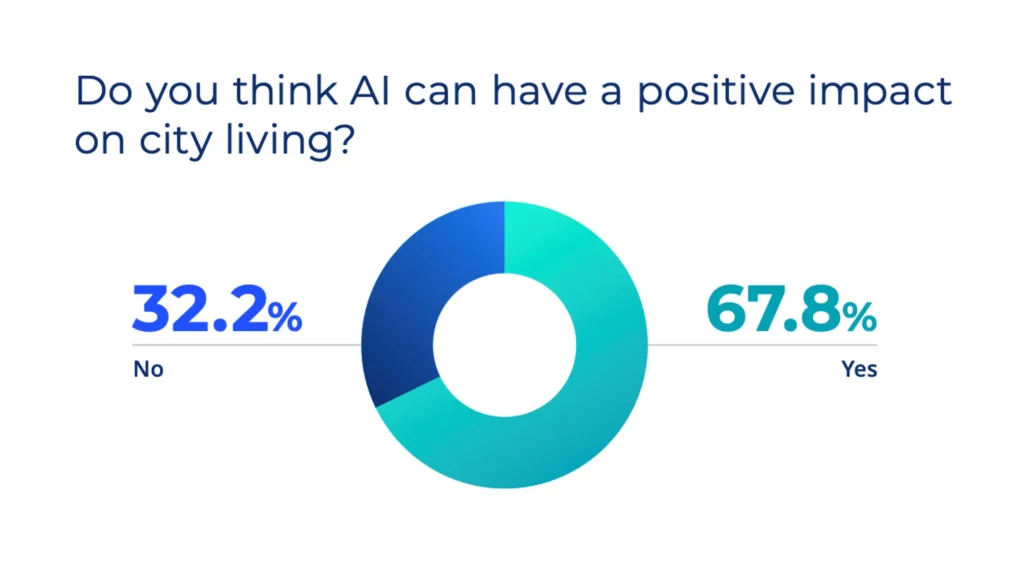 Nationwide, our survey found that 67% of respondents believe AI will positively impact city life in the future, particularly in areas like traffic management, environmental monitoring, public safety and healthcare access. This aligns with similar findings from IMD and ThoughtLab, and the priorities reflect citizens’ top concerns and most significant pain points. With AI, however, respondents are optimistic that city leaders will be able to finally address these longstanding challenges.