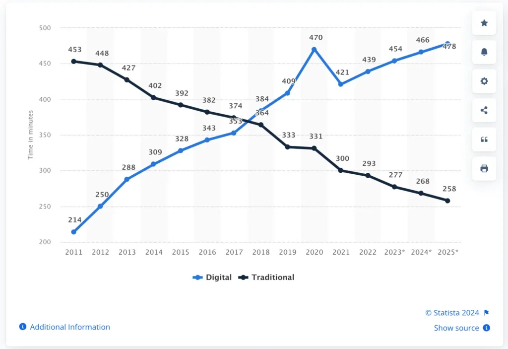 This shift is driven by the increased accessibility of smartphones and tablets, encouraging users to engage with content on the go, anywhere and anytime. According to recent studies, the average American now spends over four hours per day on mobile devices, with a significant portion of that time dedicated to social media platforms such as Instagram, TikTok and YouTube. For traditional media companies, the challenge is clear: to remain relevant and capture value in the new attention economy, they must evolve.